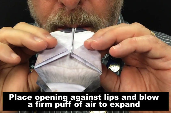 Like the real module, the paper model begins in a compact state and then is inflated. The origaBEAMi though, takes a lot less time to take shape and requires just your mouth to expand.