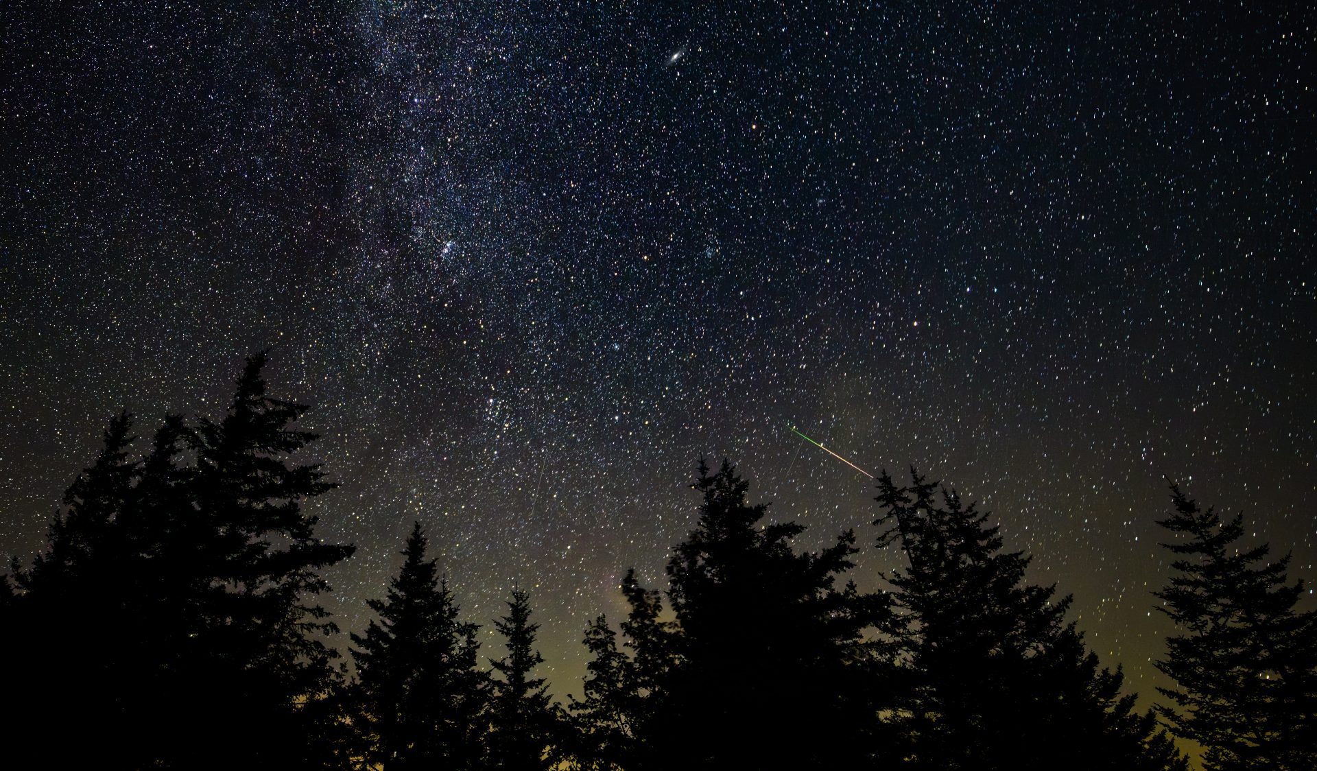 In this 30 second exposure photograph, a meteor streaks across the sky during the annual Perseid and Alpha Capricornids meteor showers, Sunday, Aug. 3, 2025, in Spruce Knob, West Virginia.